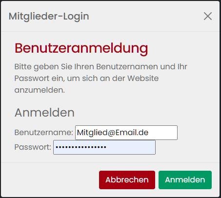 Bitte geben Sie Ihren Benutzernamen und Ihr Passwort ein, um sich an der Website anzumelden.